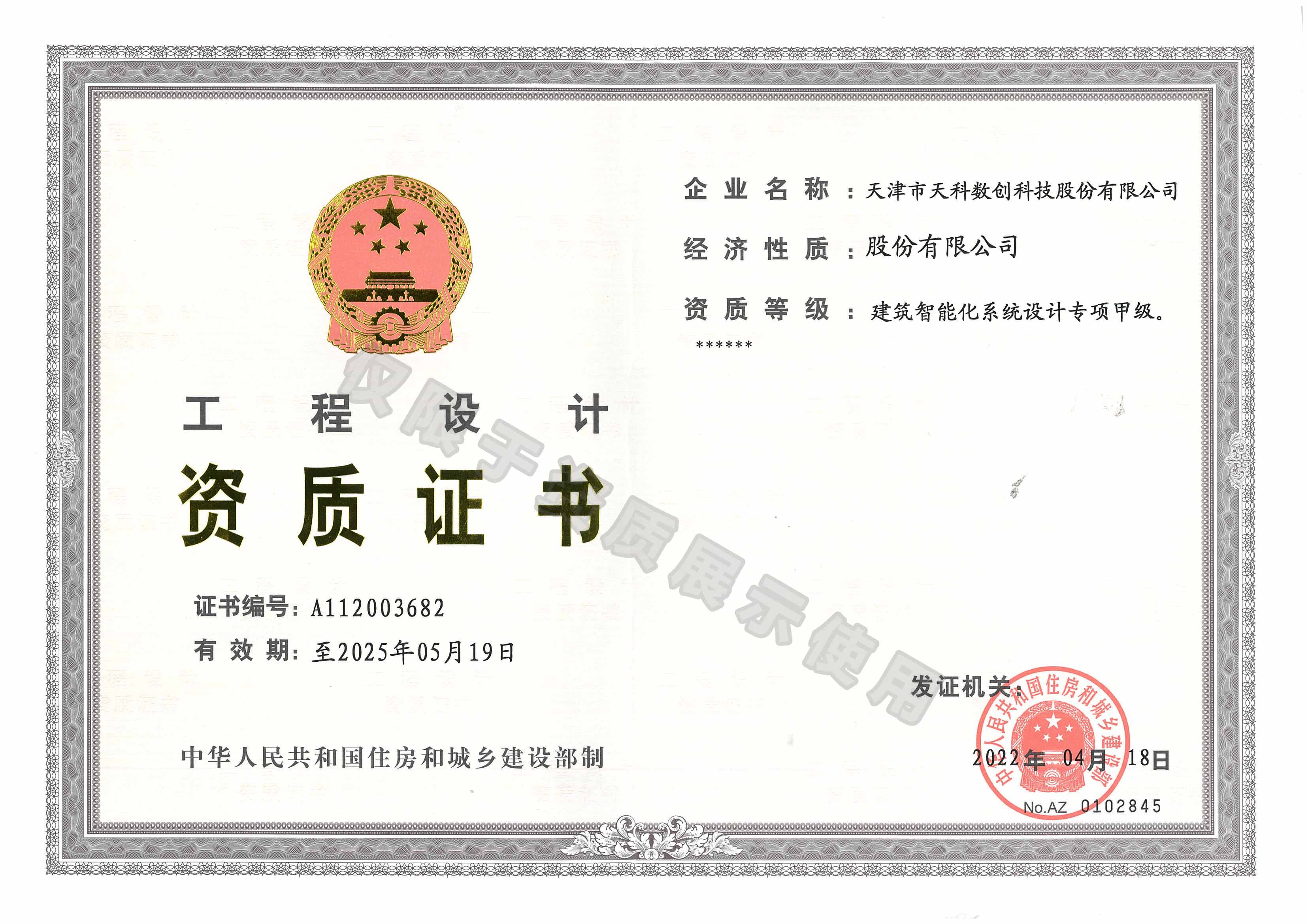 • 工程設計資質(zhì)證書